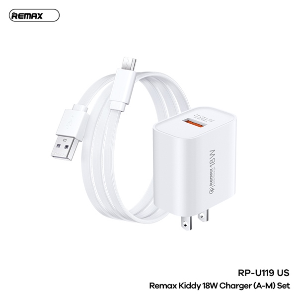 Bộ Sạc Điện Thoại Remax RP-U119 1 Cổng USB Kèm Cáp Micro PD 18W Cáp Dài 1m (Trắng)