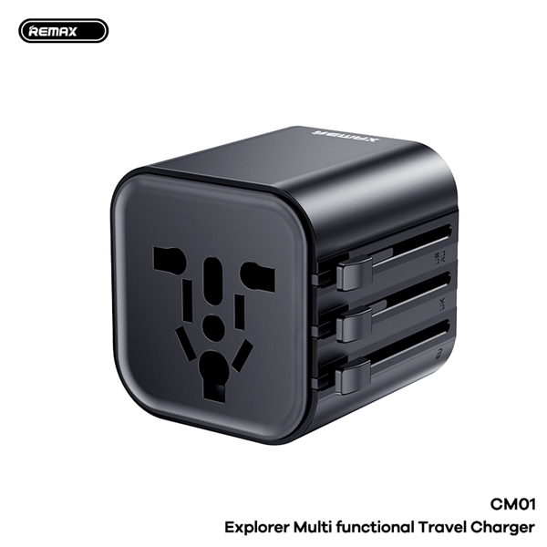 Bộ Sạc Du Lịch Đa Năng Remax CM01 Tích Hợp Phích Cắm AU/US/EU/UK 2500W (Đen)