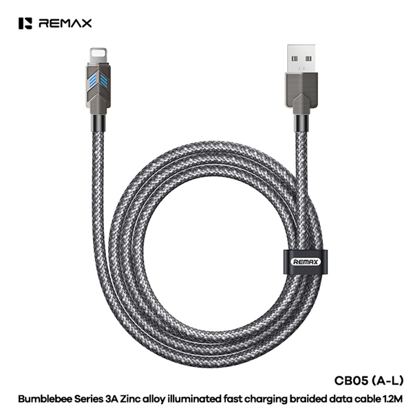 Cáp Sạc Nhanh Remax CB05(A-L) Cổng USB to L PD 3A Thiết Kế Dây Bện Chống Gãy Có Đèn LED Sáng Dịu Khi Sạc Dài 1m2 (Đen)