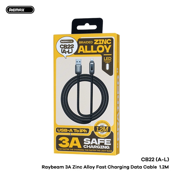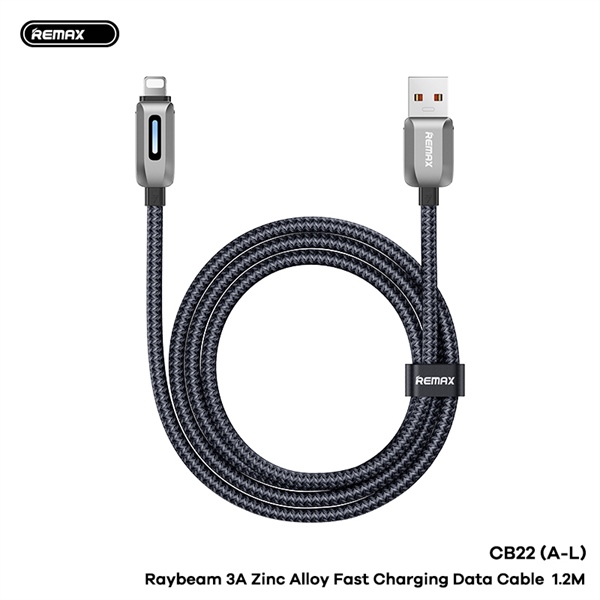 Cáp Sạc Nhanh Remax CB22(A-L) Cổng USB to L PD 3A Thiết Kế Dây Bện Chống Gãy Có Đèn LED Sáng Dịu Khi Sạc Dài 1m2 (Đen)