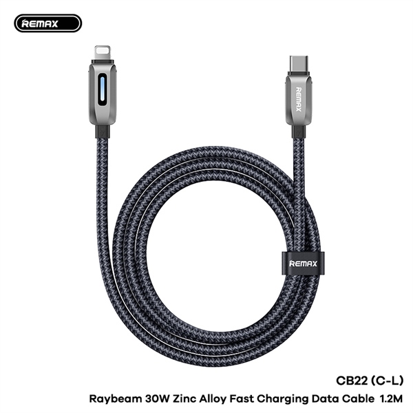 Cáp Sạc Nhanh Remax CB22(C-L) Cổng Type C to L PD 30W Thiết Kế Dây Bện Chống Gãy Có Đèn LED Sáng Dịu Khi Sạc Dài 1m2 (Đen)
