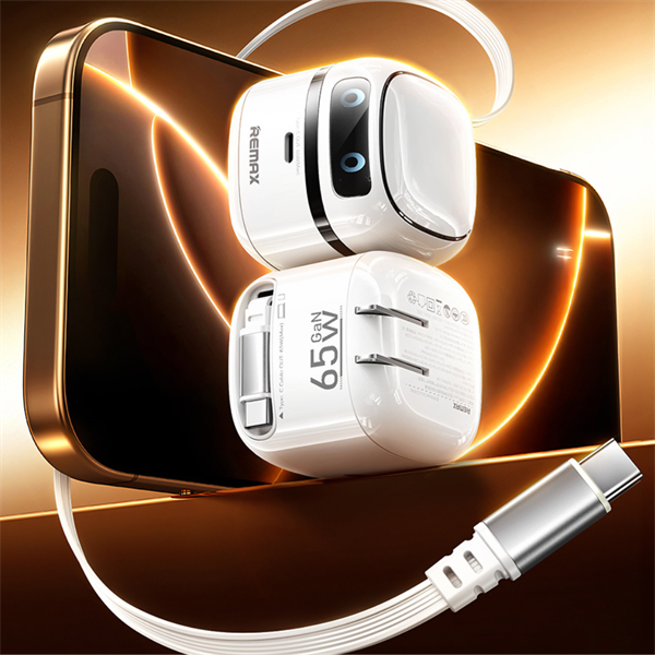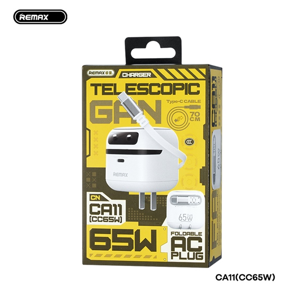 Cốc Sạc Nhanh Remax CA11-CC65W 1 Cổng Type C Kèm Cáp Dây Rút Type C PD 65W Thiết Kế Robot Chân Gập Chuẩn CN (Trắng)