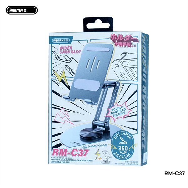 Giá Đỡ Điện Thoại Máy Tính Bảng Remax RM-C37 Chất Liệu Hợp Kim Xoay 360 Độ 4-11 inch (Đen)