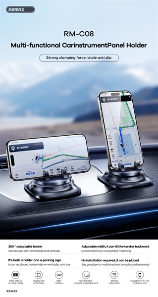 Giá Đỡ Điện Thoại Trên Xe Hơi Remax RM-C08 Bảng Điều Khiển Đa Năng Xoay 360 Độ (Đen)