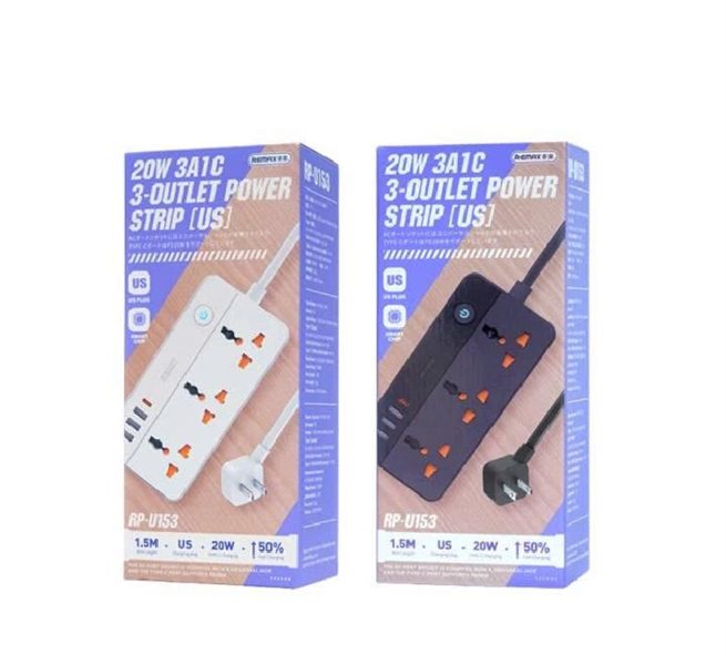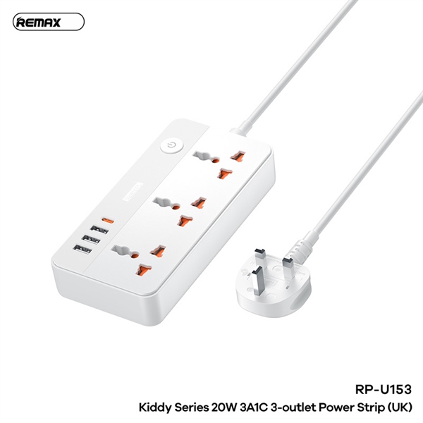Ổ Cắm Điện REMAX RP-U153 3 Cổng USB 1 Cổng Type C và 3 Ổ Cắm PD 20W + 2500W Dài 1m5 Chuẩn UK (Trắng)
