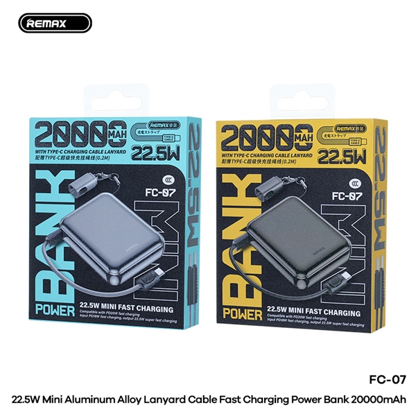 Pin Dự Phòng Sạc Nhanh Remax FC-07 20000mAh 1 Cổng C QC3.0+PD 20W+22.5W Kèm Cáp (Bạc)