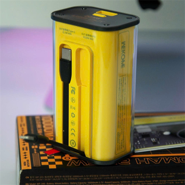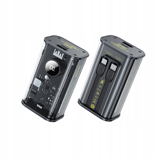 Pin dự phòng trong suốt WEKOME WP-345 10000mAh QC3.0 PD max 22.5W 1 cổng USB và 1 cổng Type C kèm cáp Lightning và Type C có màn hình LED báo dung lượng pin (Xám)