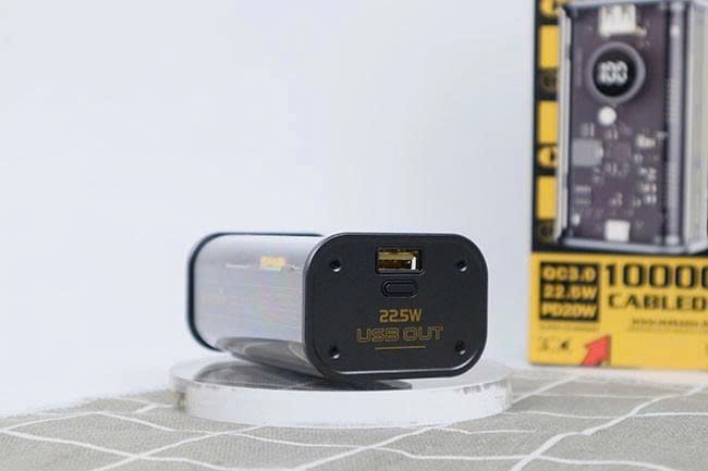 Pin có: 1 cổng USB, 1 cổng Type C (input), 2 cáp ngắn (cáp Type C, LN)