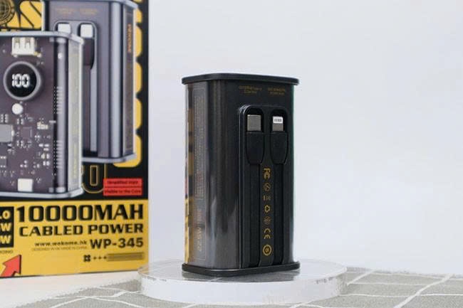 Pin dự phòng trong suốt WEKOME WP-347 20000mAh QC3.0 PD max 22.5W 1 cổng USB và 1 cổng Type C kèm cáp Lightning và Type C có màn hình LED báo dung lượng pin (Vàng)