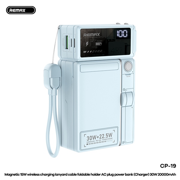 Pin Sạc Dự Phòng REMAX CP-19 20000mAh 1U+1C+1L Kèm Cáp C-L Sạc Ko Dây Từ Tính 15W Tích Hợp Giá Đỡ Tiẹn Lợi (Xanh)