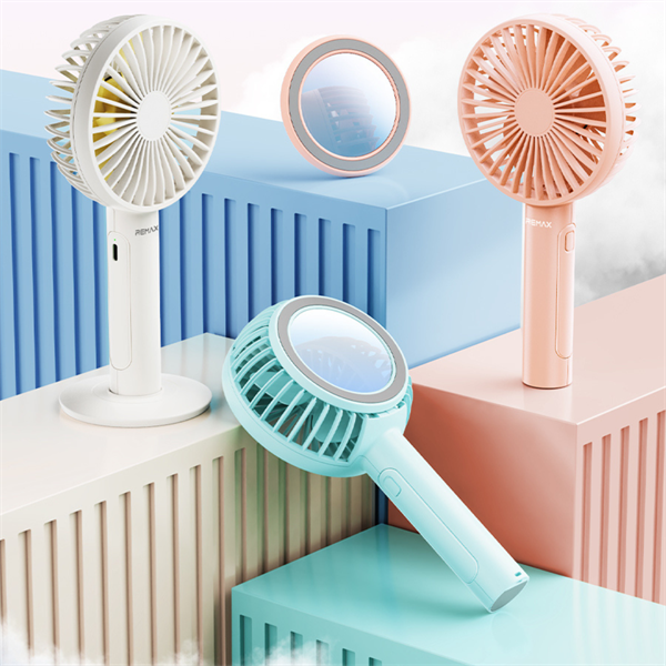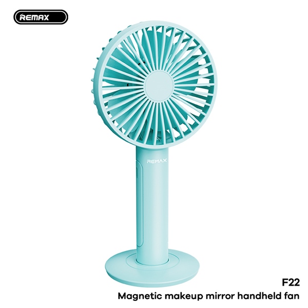 Quạt Cầm Tay Remax F22 Pin 1800mAh Công Suất 5W Tích Hợp Gương Trang Điểm Từ Tính Kèm Đế Để Bàn Tiện Lợi (Xanh Dương)