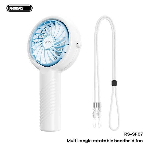 Quạt Cầm Tay Remax RS-SF07 Xoay Đa Góc Pin 1200mAh Công Suất 2.5W Kèm Dây Đeo Tiện Lợi (Trắng)