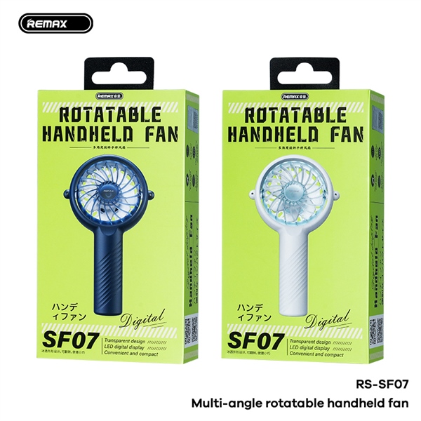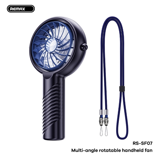 Quạt Cầm Tay Remax RS-SF07 Xoay Đa Góc Pin 1200mAh Công Suất 2.5W Kèm Dây Đeo Tiện Lợi (Xanh Dương)