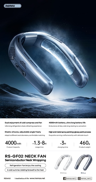 Quạt Đeo Cổ Remax RS-GF02 Pin 4000mAh Tích Hợp Sò Lạnh (Xanh Dương)