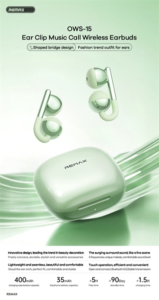Tai nghe True Wireless Bluetooth V5.4 OWS-15 Pin 35mAh/400mAh Thiết Kế Tai Nghe Mới Độc Lạ Tích Hợp Chức Năng ENC (Tím)