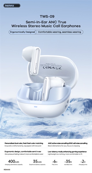 Tai nghe True Wireless Bluetooth V5.4 TWS-09 Pin 35mAh/400mAh Tích Hợp Chức Năng ANC+ENC Kèm Dây Đeo Nhỏ Tiện Lợi (Trắng)